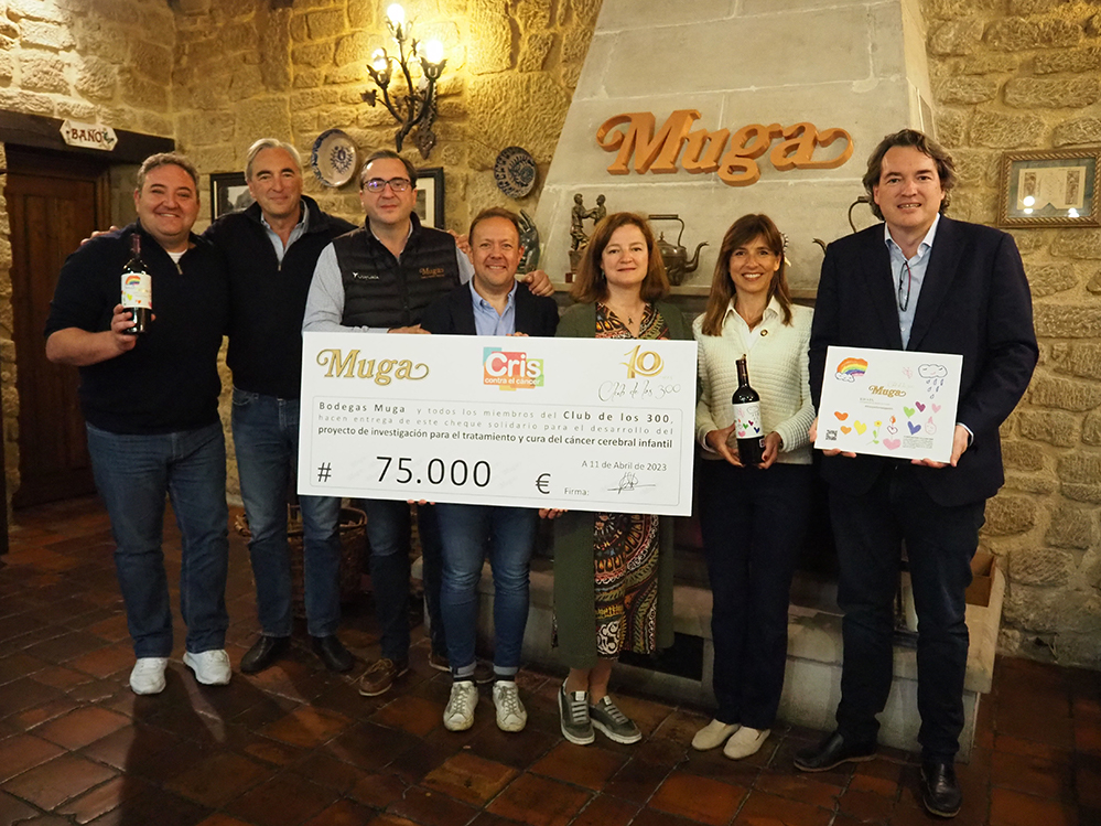 Bodegas Muga ha hecho entrega del cheque donativo, por importe de 75.000 euros, del proyecto “Vino por Investigación”, a través de la iniciativa social ‘Club de los 300’ y de la mano de todos los miembros que la conforman y han hecho esto posible, para desarrollar el proyecto de lucha contra el cáncer cerebral infantil -Meduloblastoma-, el tumor cerebral maligno más común en niños.